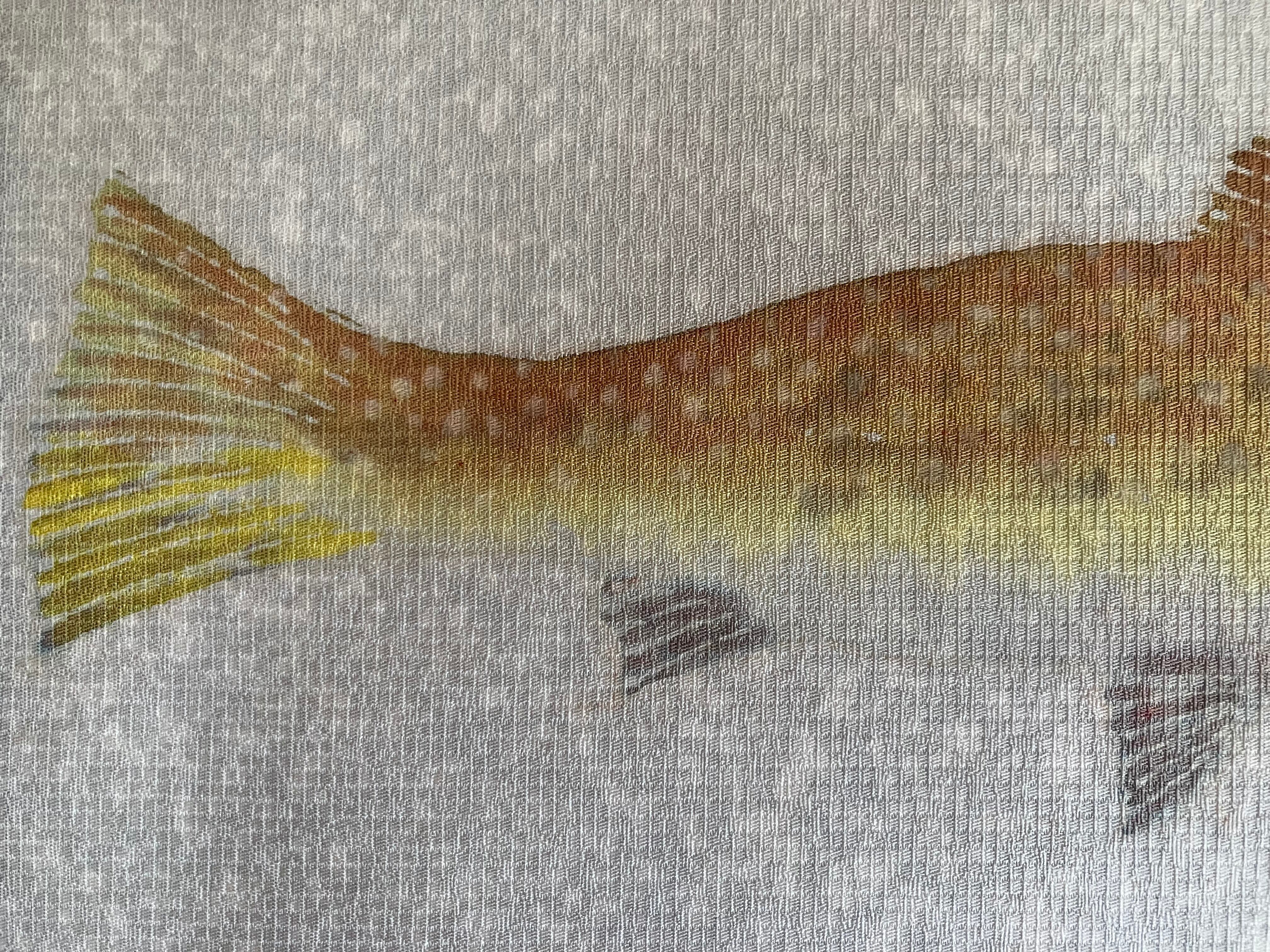 ワックス(蝋)を使った染め技法で描かれたバティックと京友禅染を組み合わせたアートパネル、「IWANAtrout TG-02」は、フライフィッシングを趣味とする染め作家による作品です。京都で伝統的な染め技術を駆使し、丹精込めて生み出されたこのアートパネルは、美しい仕上がりに驚くことでしょう。
